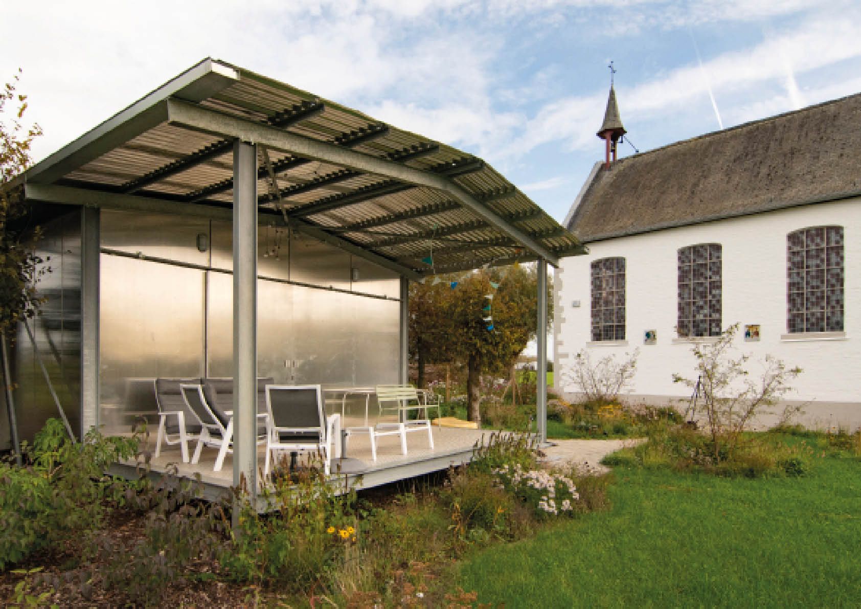 Une chapelle du XVIIe siècle située au milieu d'un champ dans la région de Dender est réaménagée en habitation. Une structure légère en acier est adossée contre le mur est et rend l'espace généreux habitable.