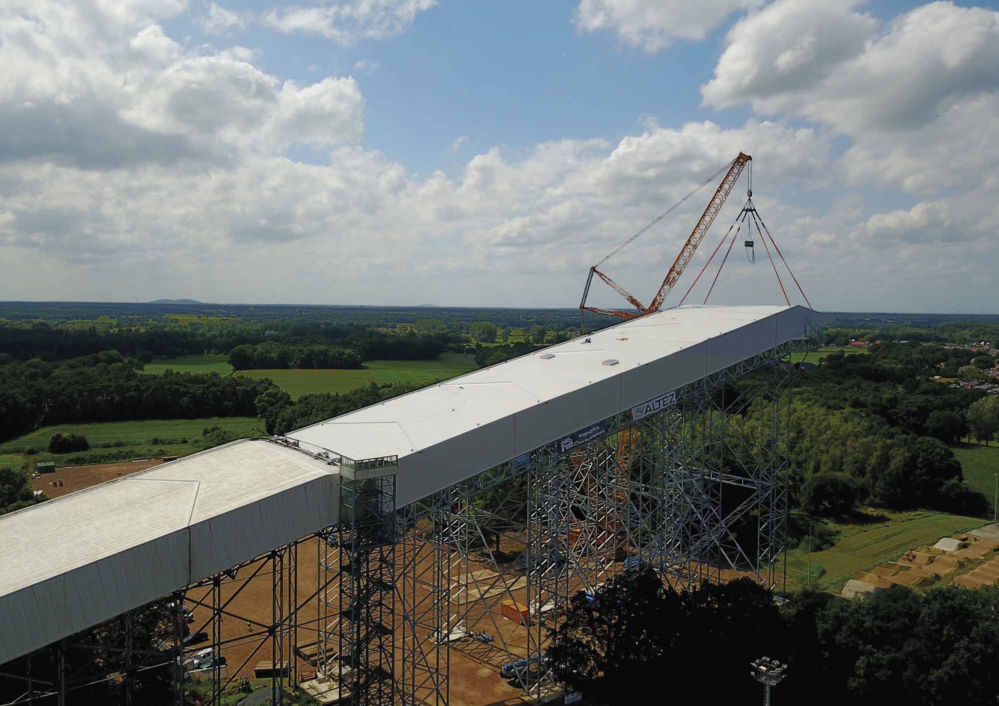 De uitbreiding van de indoor skipiste rust op tien gegalvaniseerde stalen pijlers (5355) met betonnen funderingszolen van 32 m3 die op hun beurt steunen op zestien schroefpalen met een diepte van 14 m. De pijlers werden in zo groot mogelijke delen aan elkaar gelast. Dankzij tal van vakwerken konden de beoogde overspanningen zonder problemen gerealiseerd worden. De dimensionering van het geheel werd voortdurend aangepast in functie van de stabiliteit.