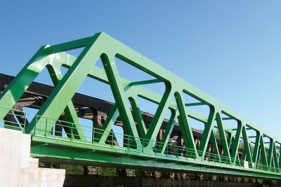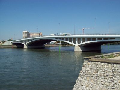 Tekst: <p>La passerelle du Pont de Bezons s’inscrit dans la résolution des problèmes de circulation de la ville. Le prolongement de la ligne de tramway T2 depuis le centre vers les faubourgs demandait l’utilisation complète d’un pont existant sur la Seine. <br>En conséquence, la circulation piétonne et cycliste a été reportée sur deux nouvelles passerelles métalliques ajoutées latéralement à l’ouvrage existant. Préfabriquées , les structures métalliques qui reprennent l’esthétique en arcs du pont, ont été déplacées par barges et mise en place par une grue mobile depuis le ponton.