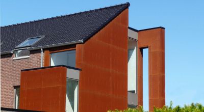Tekst: <p>L’acier autopatinable, a été l’élément clé de ce projet de transformation d’une habitation et de ses annexes en deux appartements. Le projet offre une relecture contemporaine, aux allures manufacturières, de l’architecture de la bâtisse initiale. <br>