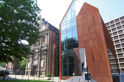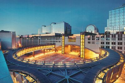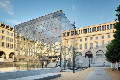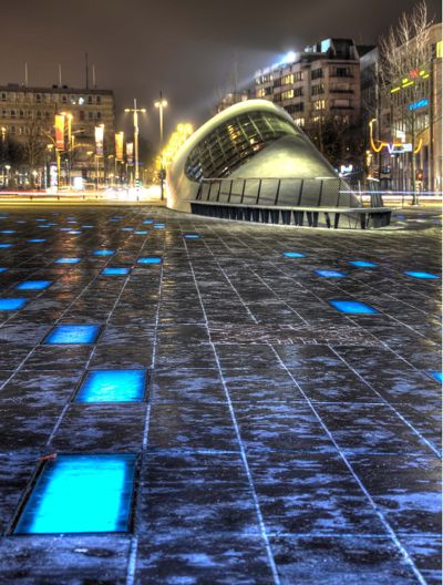 Tekst: <p>L’un des objectifs de la rénovation du Palais des Congrès de Bruxelles (devenu le Square Brussels Meeting Centre) visait à obtenir une grande lisibilité du bâtiment. <br>De l’extérieure un emblème poétique identitaire marque l’entrée principale sous la forme d’un cube de verre.<br>La structure arborescente du cube, traitée tout en transparence et en lumière, évoque l’architecture de jardin. Cette monumentalité douce et poétique dialogue avec le tracé des espaces publiques extérieurs. Le cube abrite un ruban d’escaliers suspendus et des passerelles reliant les différents niveaux d’accès du complexe. Le choix de profils en acier permet de réaliser une structure d’apparence aussi légère, transparente et aléatoire, qui souligne ainsi le caractère végétal du lieu.