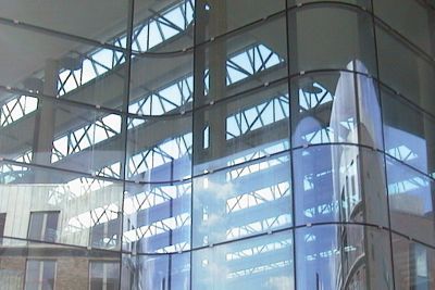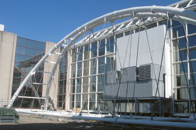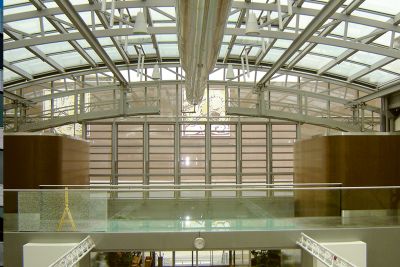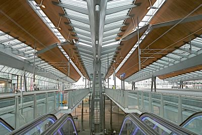 La fonction de la coupole en acier est à la fois esthétique et opérationnelle. Elle assure d’une part un apport de lumière suffisant, et doit d’autre part être démontable pour la mise en place ou l’enlèvement de l’escalator ou d’autres appareillages de grande taille. Exigence supplémentaire, la coupole devait être à même de résister aux efforts accidentels. Afin de satisfaire ces deux exigences contradictoires, la solution en acier a été choisie, celle-ci étant à la fois légère et résistante.</p>