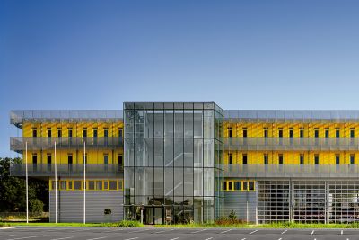 <p>La structure innovante en acier est l’aboutissement d’une recherche d’élancement et d’économie de matière. Elle intègre avec élégance des toitures et des façades photovoltaïques semi-transparentes offrant un environnement de travail confortable, adaptable et économe en ressources naturelles.</p>