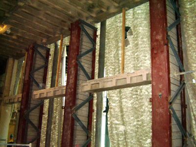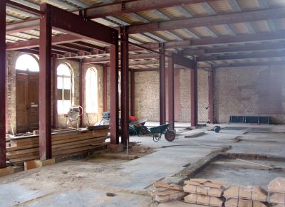 Tekst: <p>Pour la rénovation de la maison communale de Hoegaarden, seuls les quatre façades extérieures et le sous-sol avec ses voûtes en berceau devaient être conservés. La structure était en très mauvais état et tous les murs intérieurs, les planchers et le toit devaient être remplacés. En outre, l’entrepreneur redoutait l’ampleur des coûts qu’entraîneraient l’étayage des parois et le phasage des travaux de bétonage. C’est pour ces raisons que fut conçu un étayage en acier qui servirait par la suite de structure définitive. La première opération consista à introduire dans le bâtiment de nouvelles colonnes en acier par des ouvertures créées dans le toit. Les colonnes furent assujetties aux façades et au rez-de-chaussée au moyen d’étais diagonaux. Le plancher supérieur fut alors démonté, avant de placer la structure en acier de la nouvelle dalle. Il fut ensuite procédé de manière analogue pour les combles. Enfin, la structure du toit fut remplacée par une nouvelle charpente en acier.