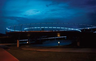 Les voies d’accès en spirale ont en outre été mises à profit comme atout architectural pour conférer à la passerelle un aspect ludique et une élégance naturelle. Cet effet est encore renforcé par l’éclairage longiligne réalisé au moyen de LED dans les garde-corps. La structure de la passerelle, dont la plus grande portée est de 20 m, est constituée d’une poutre caisson sans torsion en acier S355 J2G3, avec nervures de raidissement sur la face supérieure, reposant sur des poteaux en acier. Le choix de l’acier fut en partie déterminé par la possibilité de réaliser entièrement la construction en atelier.