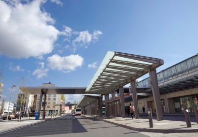La mission n’était pas simple : les 49 colonnes tubulaires devaient être implantées en tenant compte du parking souterrain sur lequel vient s’ancrer l’auvent. Des poutrelles secondaires sont suspendues à la structure principale dans le plan de la toiture. Ces poutrelles secondaires supportent le verre. Cette structure donne l’impression que l’entièreté de la toiture flotte au-dessus de la place.</p>