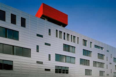 Tekst: <p>Le centre Sjakket répond à une fonction de pédagogie sociale adaptée à des jeunes de 11 à 17 ans en décrochage scolaire et à leurs parents. Il trouve place dans une ancienne fabrique de 1938, représentative de l’architecture industrielle danoise. Les architectes ont voulu conserver cette esthétique, trace du passé industriel du quartier. L’intervention contemporaine consiste dans le réaménagement du bâtiment, particulièrement des deux toitures cylindriques et le placement, quasi en apesanteur d’un volume rectangulaire déposé, comme en équilibre, sur ces voûtes. Les voûtes existantes sont reproduites et rénovées avec une couverture acier, subtilement percées de coupoles. La partie centrale, symboliquement et structurellement conçue comme un pont, réuni les voûtes et abrite les fonctions d’activités communes. La légèreté structurelle et visuelle a conduit au choix de l’acier. Le revêtement de façade, rouge intense, tout comme la forme parallélépipède simple rappelle les containers du port voisin. </p>