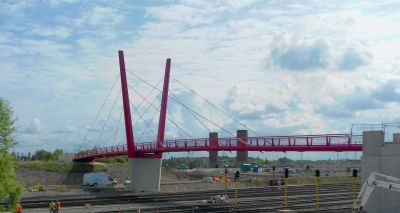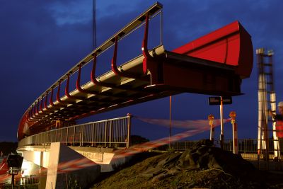 Grâce à l’utilisation d’une structure portante en acier, il a été possible de limiter au maximum les travaux sur chantier. En effet, comme le pont surplombe des voies de chemin de fer très fréquentées, il était crucial de limiter au maximum la durée de montage. Une fois de plus, l’acier a prouvé sa force sur ce point grâce à un montage rapide.