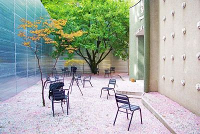 L’élément le plus marquant de l’intervention - le mur - a entièrement été réalisé au moyen de pièces d’échafaudages en acier galvanisé, prêtées pour la durée de la Biennale et ensuite reprises par l’entrepreneur spécialisé. Les panneaux réfléchissants, utilisés comme finition extérieure parfaitement modulée du mur, sont en réalité les passerelles du système original. La réalisation du mur devait se dérouler sur la base de conditions très contraignantes : l’impossibilité de prévoir des fondations et des limitations budgétaires. Les éléments d’échafaudages en acier offraient la seule réponse possible à ce problème.