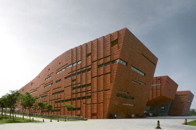 La structure en acier a été construite sur un soubassement massif. Les façades et la couverture de toiture courbe sont revêtues de tôles métalliques profilées, à l’exception d’une partie verticale en cèdre huilé. Les coursives extérieures ont été pourvues de caillebotis en acier galvanisé. Les garde-corps et les couvre-murs sont en acier inoxydable brossé. <br>