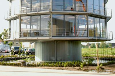Tekst: <p>Pour relier de manière rapide et élégante son bâtiment de bureaux existant avec le nouveau, la firme Dredging International a opté pour une étonnante liaison en acier. Les concepteurs ont veillé à utiliser une structure porteuse légère afin de donner aux passerelles le plus de transparence possible.<br>>La légèreté de la structure a été obtenue par l’utilisation d’un cadre en acier renforcé par des barres en tension et parachevé au moyen de façades en verre. La finition a été complétée par quelques éléments plus petits tels qu’escaliers et rampes d’accès, eux aussi réalisés en acier. Par le choix de l’acier et du verre, les couloirs de liaison ont dépassé leur caractère purement fonctionnel. Leur légèreté et leur modernisme apportent une plus value aux deux ailes de la société, l’ancienne et la nouvelle.