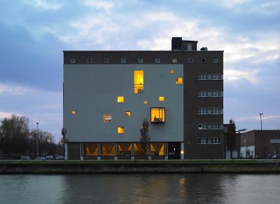 Tekst: <p>Un amateur d’art était à la recherche d’un endroit pour sa collection. L’espace idéal se révéla être un vieux silo à grains le long du canal Bocholt-Herentals. Afin de préserver le lien avec le passé industriel du lieu, il fut décidé de garder intégralement l’enveloppe extérieure du bâtiment ainsi que différents éléments caractéristiques ; seule la configuration intérieure de ce silo monolithique dut être adaptée à sa nouvelle fonction. <br>