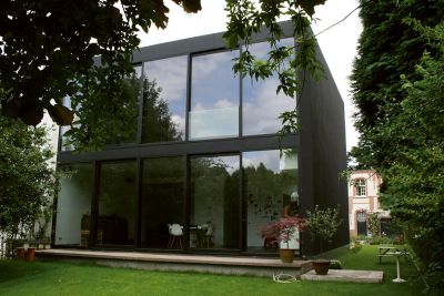 Tekst: <p>En concertation avec les services du patrimoine (Monumentenzorg), une habitation datant du début du 19e siècle a été restaurée complètement dans son état originel et agrandie simultanément par l’adjonction d’une extension en acier à l’arrière et sur le côté. Dans ce projet, on a cherché à créer un volume complètement contrasté par rapport au caractère historique de l’habitation classée. L’acier s’est révélé être la solution adéquate pour la réalisation du projet dans son ensemble et pour y apporter un raffinement moderne, tant dans les rapports des volumes que dans la finition des détails ou l’utilisation des matériaux. </p>