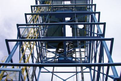 La tour est constituée d’une part d’un silo et d’autre part de machines, installées autour et au-dessus du silo. Les ouvertures dans le plancher et les supports des machines installés de manière disparate forment un puzzle de poutres et de diagonales avec les nécessaires contreventements. <br>Lors de la conception de la tour, il a aussi fallu tenir compte de paramètres tels que les actions du vent, sans négliger les effets des vents ascendants sur l’auvent. À côté du silo se trouve une tour d’accès indépendante en acier ; celle-ci est auto-stable en cas d’incendie.