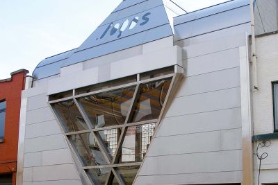 Tekst: <p>Le café ’t Schipken a été transformé en bureau d’architecture avec logement. À l’achat, le bâtiment avait été déclaré inhabitable pour un problème de structure. On y a remédié en installant à l’intérieur de la maçonnerie existante une structure porteuse en acier qui descend jusqu’au rez-de-chaussée. Le projet fait appel à des colonnes en acier et une menuiserie extérieure porteuse en acier peint par poudrage. La saillie du toit a été remplacée par une ossature porteuse soudée au préalable et installée complètement montée. Entre les ailerons en acier, des cadres de fenêtres ont été placés ; les fenêtres ont des vitrages collés et elles peuvent s’ouvrir. À l’intérieur, les escaliers ont été fabriqués en acier brut huilé. Que les éléments soient porteurs ou non, l’acier est un matériau qui autorise les sections les plus minces, caractéristique qui permet d’obtenir l’élégance optimale dans les interventions intérieures.</p>