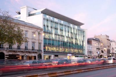 Tekst: <p>L’immeuble d’origine, une construction traditionnelle des années 1960, était devenu obsolète et demandait une rénovation profonde pour répondre aux nouvelles demandes des utilisateurs. La structure de l’immeuble est mise à nu. Les trumeaux décoratifs de façade sont tous supprimés pour offrir une vue panoramique sur le parc royal et tout le sud de Bruxelles. L’ancienne façade en pierres agrafées et en châssis d’aluminium, non isolée, fait place à une nouvelle façade en bois largement vitrée et équipée de stores pare-soleil orientables à lamelles de bambou. Un rideau de ventelles de verre encadrées d’acier inoxydable protège de la pluie le bois des étages +1 à +5 et se complète par un auvent vitré continu à l’étage +6. Au rez-de-chaussée, ainsi que sur l’angle des deux façades à rue et au droit des murs mitoyens, la protection du rideau de ventelles s’interrompt et la façade s’habille d’acier inoxydable.