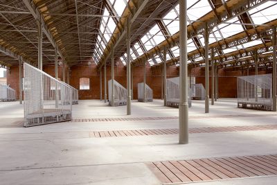 Ce dernier est le bâtiment central, anciennement hangar et dépôt de tramways, il a été conservé et constitue la pièce maîtresse de l’ensemble.<br>