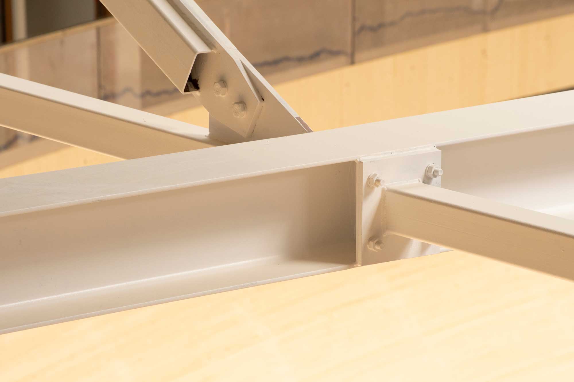 • Momentvaste verbindingen, zowel gebout (kopplaten) als volledig gelast, eventueel versterkt met schotten of consoles.