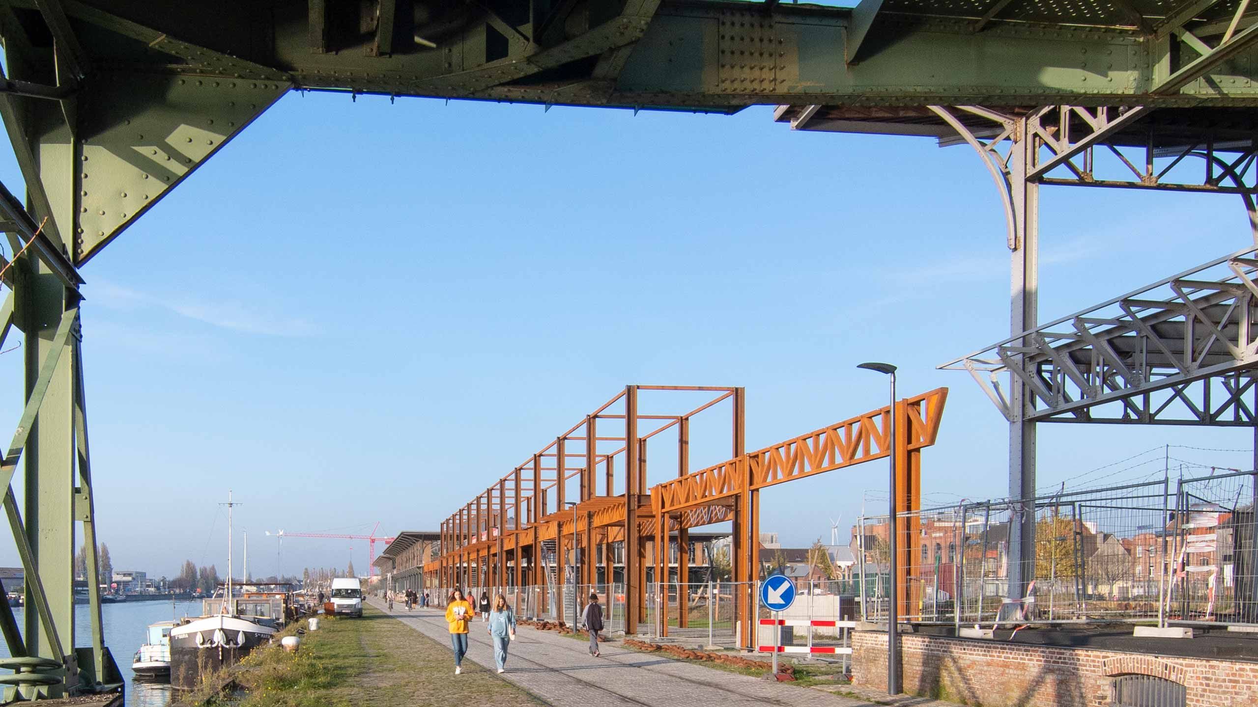 Pergola in weervast staal in de Gentse Voorhaven